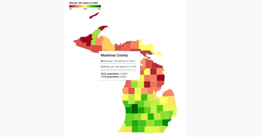 Majority of Michigan counties now have more seniors than children